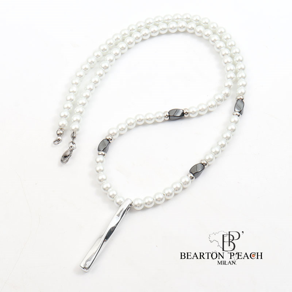 שרשרת חרוזים קלאסית בעבודת יד בסטייל קיץ 2023 עם תליון אבן ייחודי במינו.