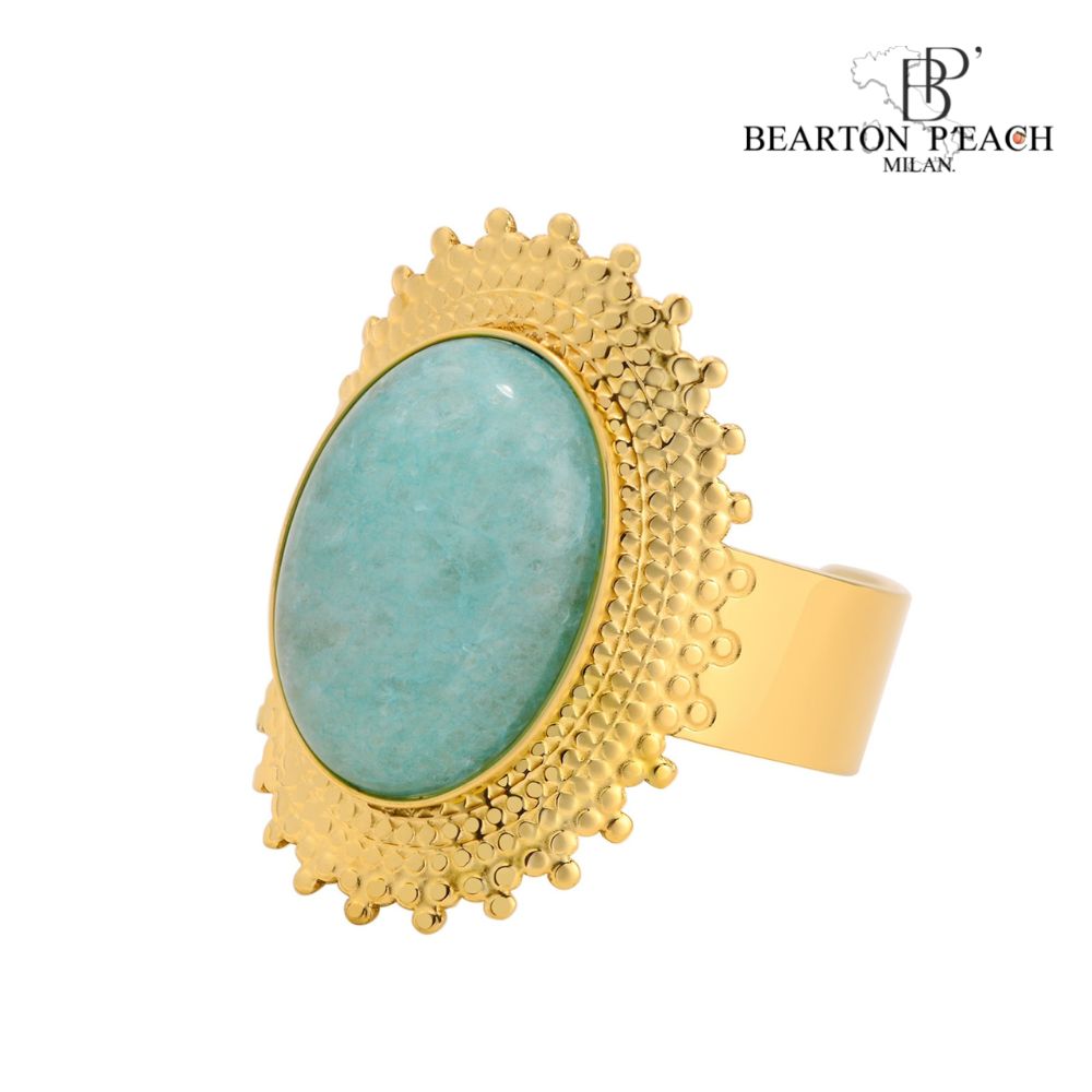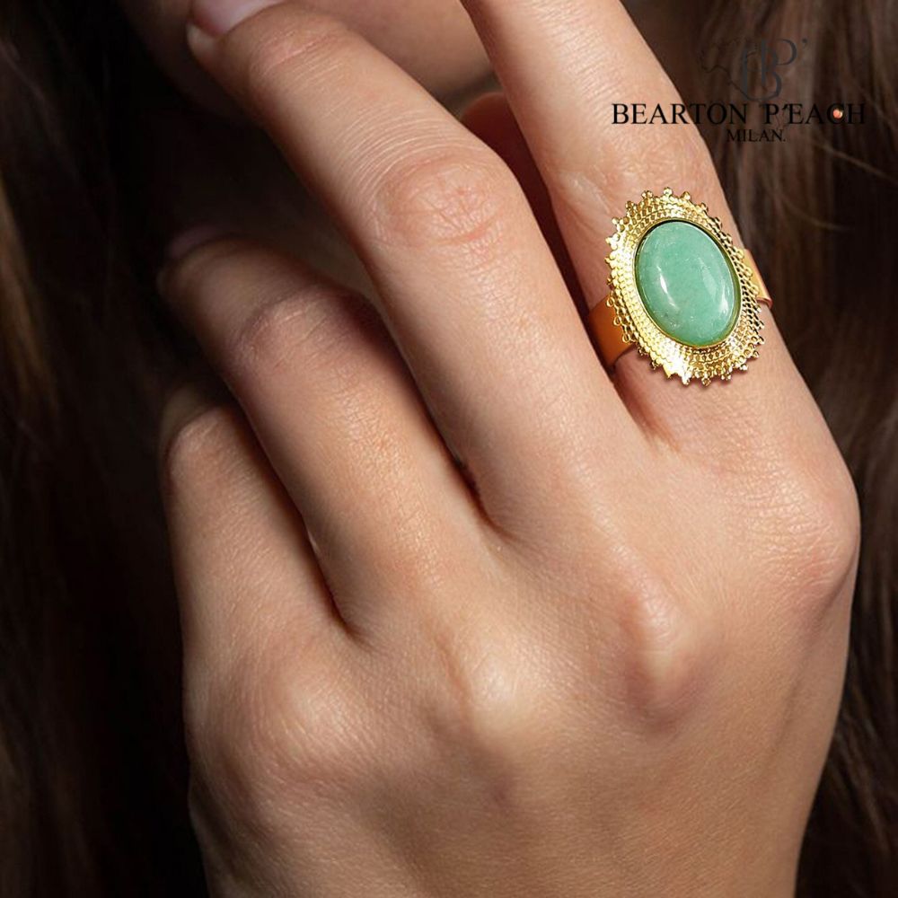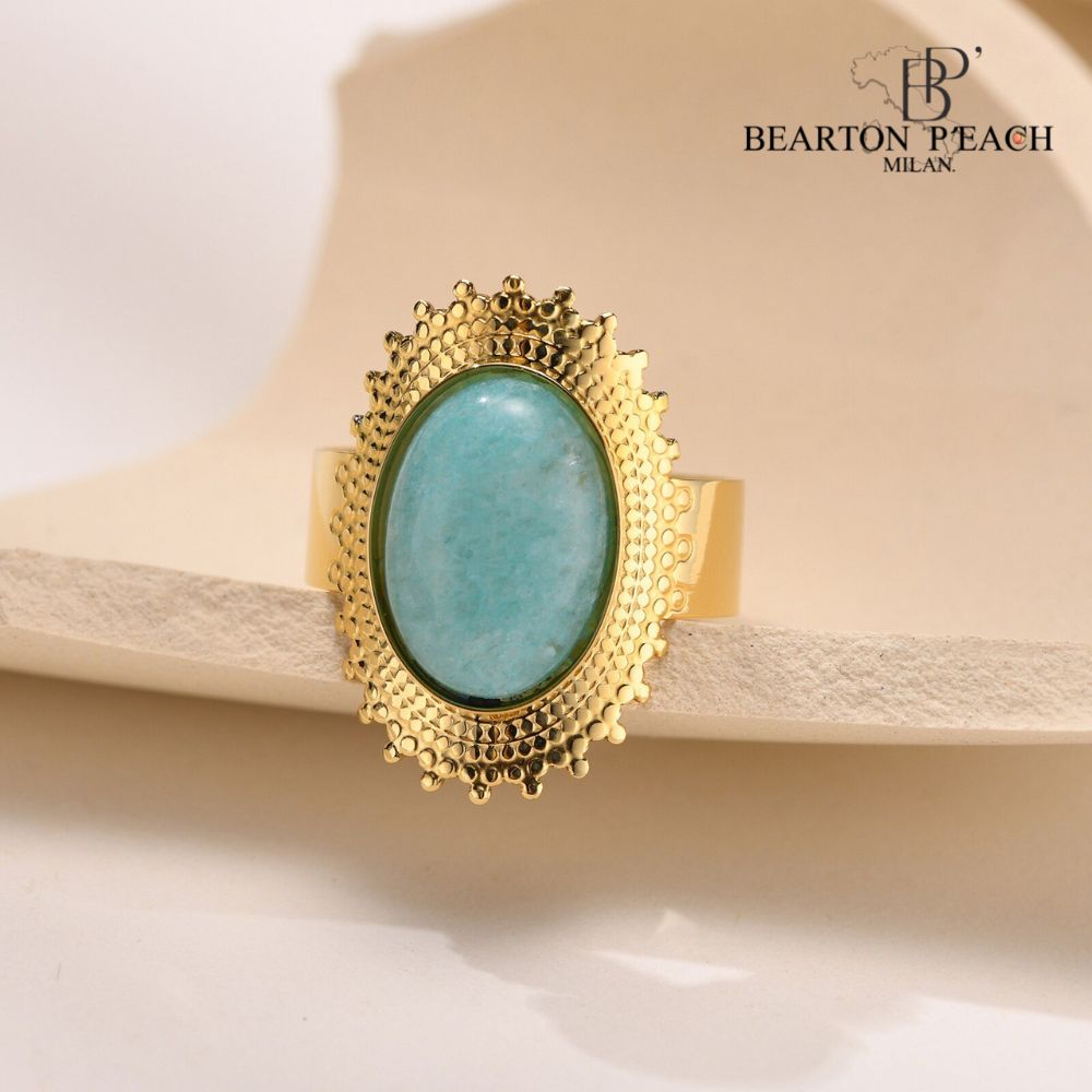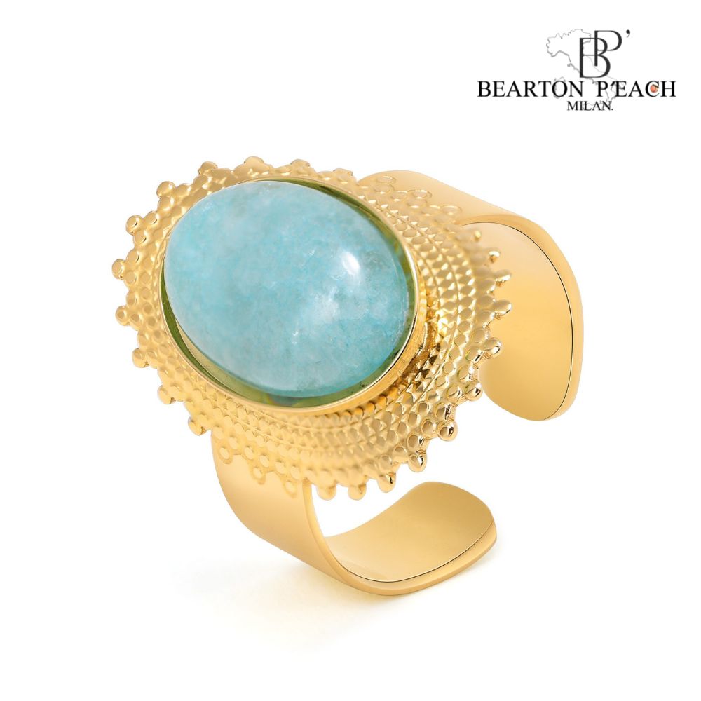 טבעת זהב קלאסית בעיצוב יווני אותנטי עם אבן כחולה במרכז