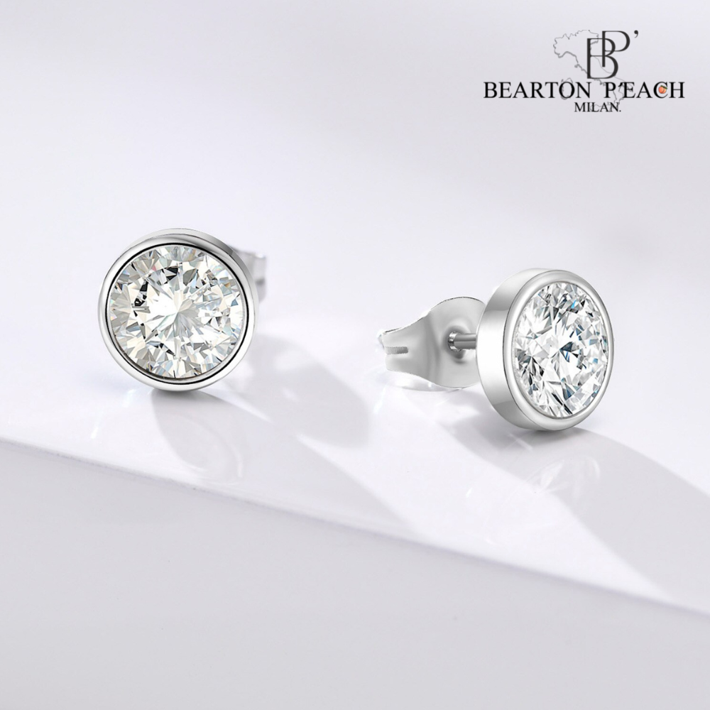 עגיל כסף אלגנטי עם יהלום נוצץ במרכז המעניק מראה אקסלוסיבי ומרשים