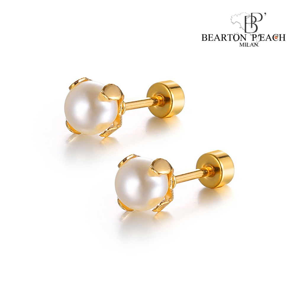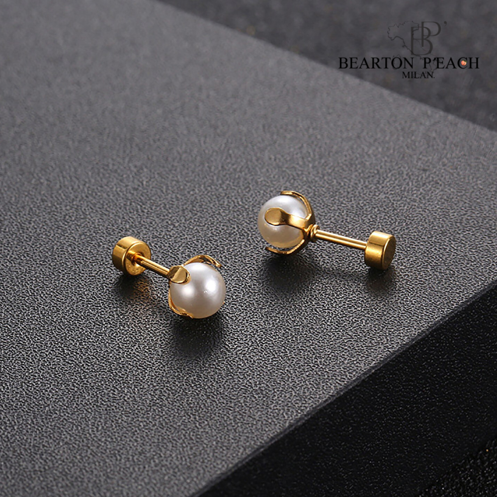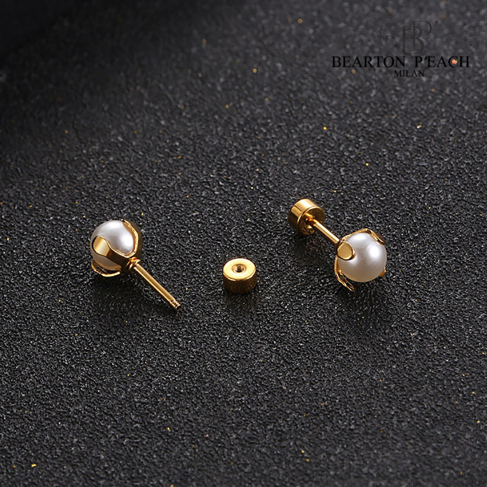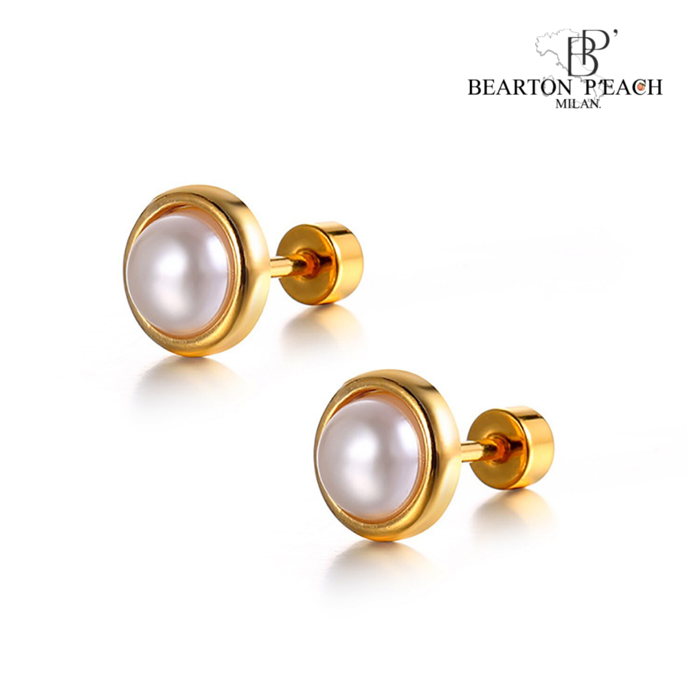 עגיל זהב אלגנט משובץ פנינה נוצצת בעיצוב איטלקי