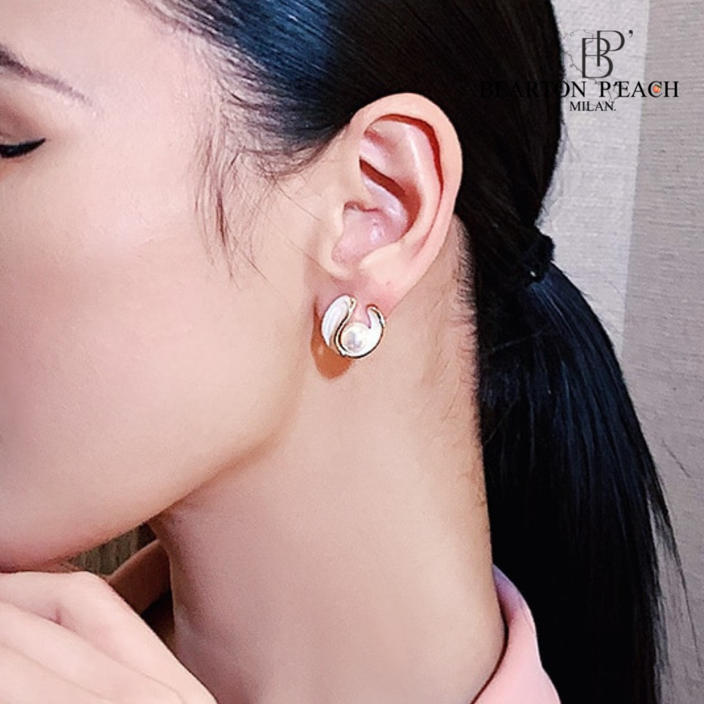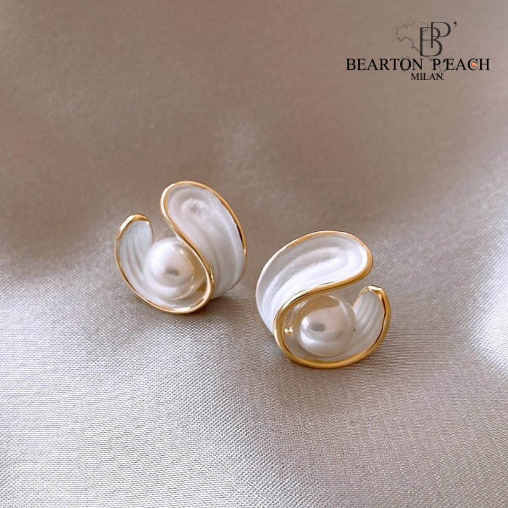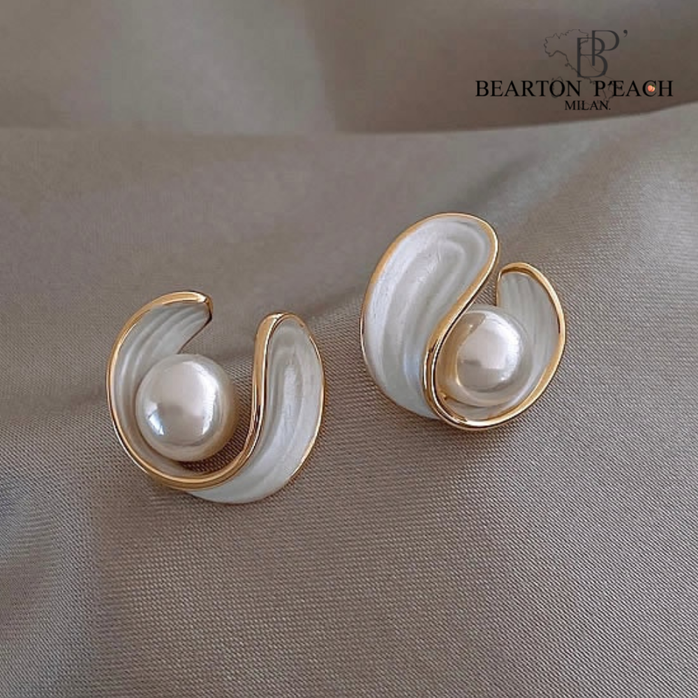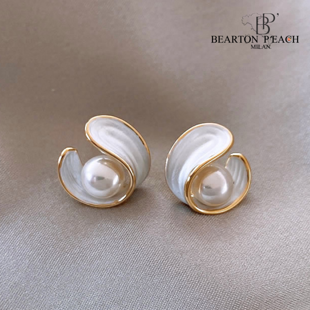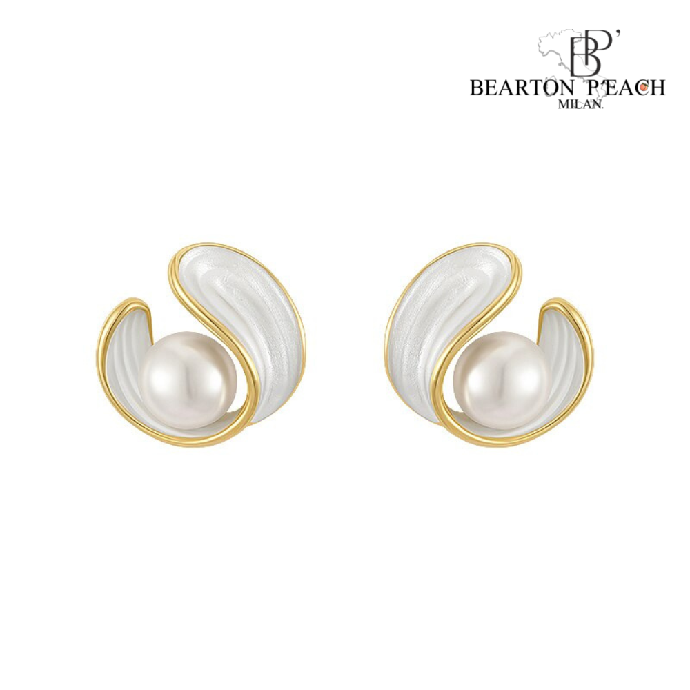 עגיל פנינה לבן זהב עדין ואלגנט במיוחד בעיצוב איטלקי
