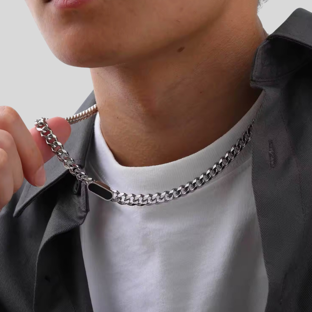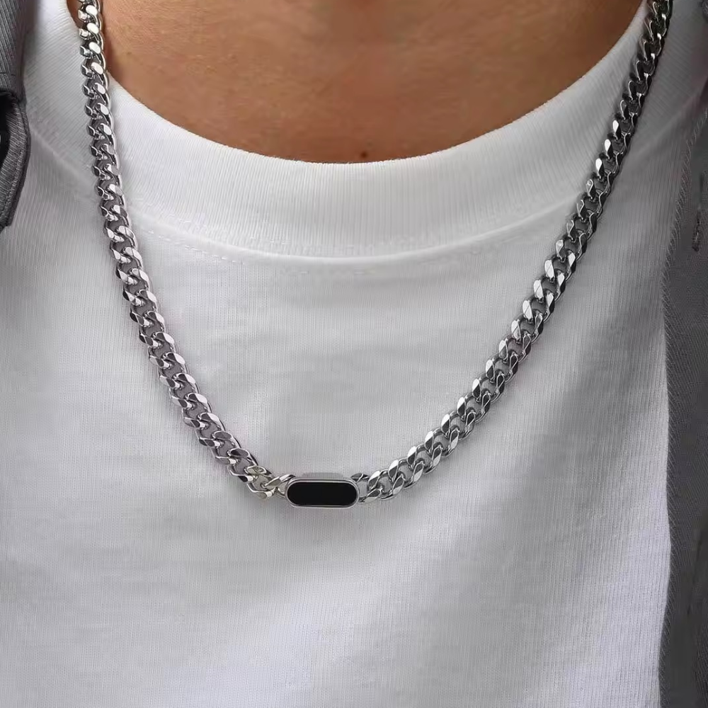 שרשרת BLACK DAWNING קלאסית בעלת מראה ייחודי, משתלבת בצורה מושלמת עם כל לוק שתלבש עם המתכת האיכותית, יוצרת מראה אלגנט ומושך. השרשרת עשויה מחומרים איכותיים ועמידים במיוחד כדי להבטיח לך מוצר בעיצוב ייחודי ומדויק שנשמר לאורך זמן, המבטאים את היוקרה והסטייל שלך. עיצובה הייחודי של השרשרת מתגלה דרך הפרטים הקטנים, הידידותיים לגוף ובהקפדה על האיכות הגבוהה ביותר שקיימת.