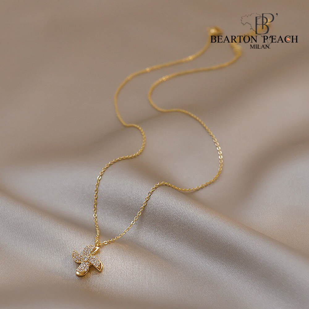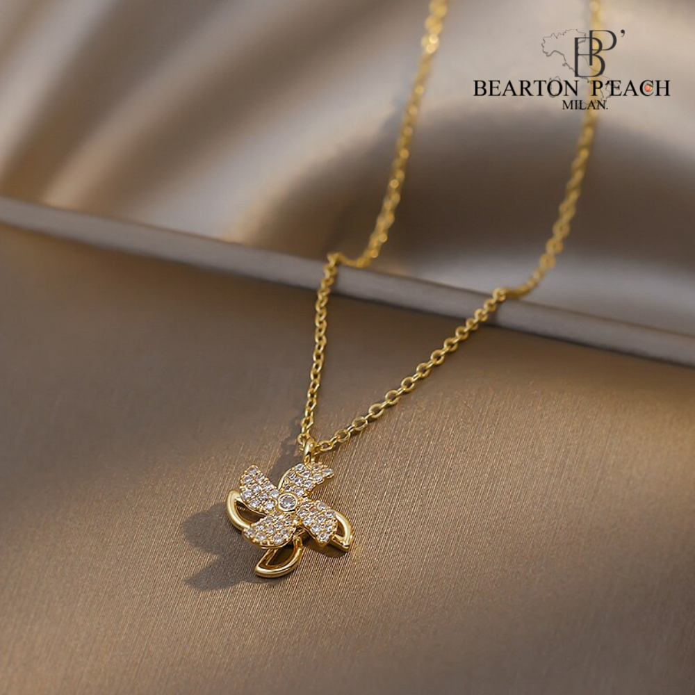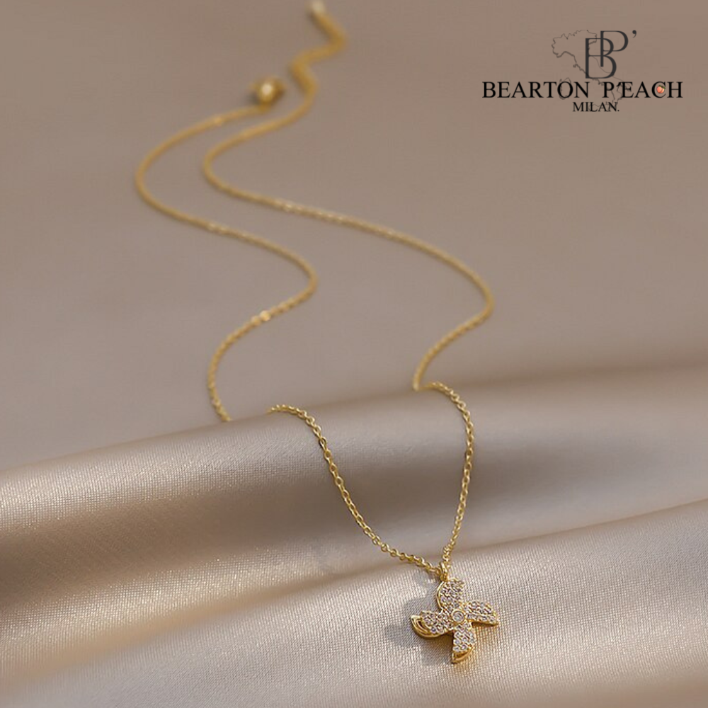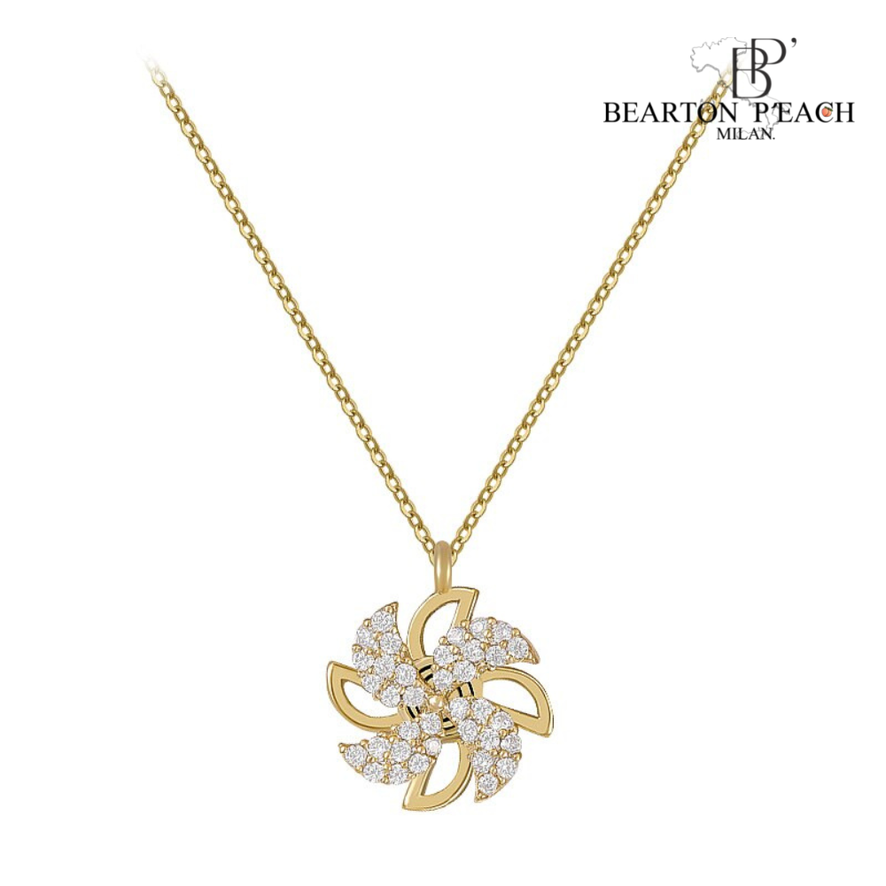 שרשרת זהב פרח קלאסית עדינה משובצת יהלומים בעיצוב איטלקי