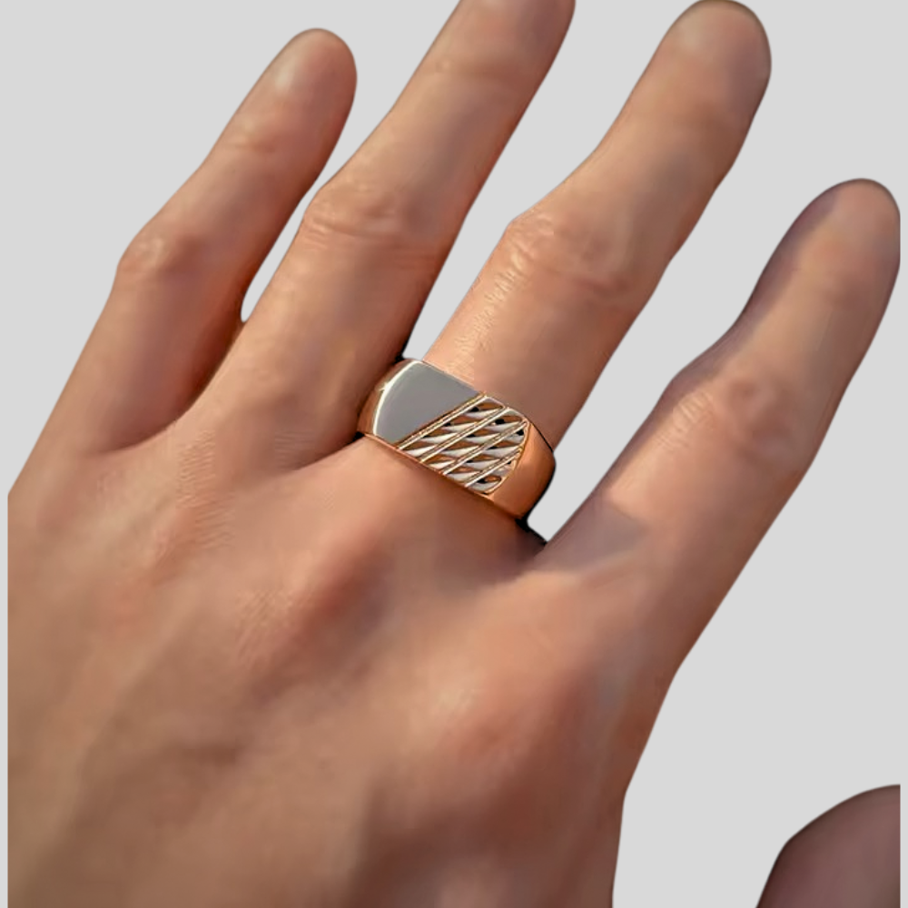 טבעת ROSE קלאסית בעלת מראה קפדני, משתלבת בצורה מושלמת עם כל לוק שתלבש עם המתכת האיכותית, יוצרת מראה אלגנט ומושך. הטבעת עשויה מחומרים איכותיים ועמידים במיוחד כדי להבטיח לך מוצר בעיצוב ייחודי ומדויק שנשמר לאורך זמן, המבטאים את היוקרה והסטייל שלך. עיצובה הייחודי של הטבעת מתגלה דרך הפרטים הקטנים, הידידותיים לגוף ובהקפדה על האיכות הגבוהה ביותר שקיימת.