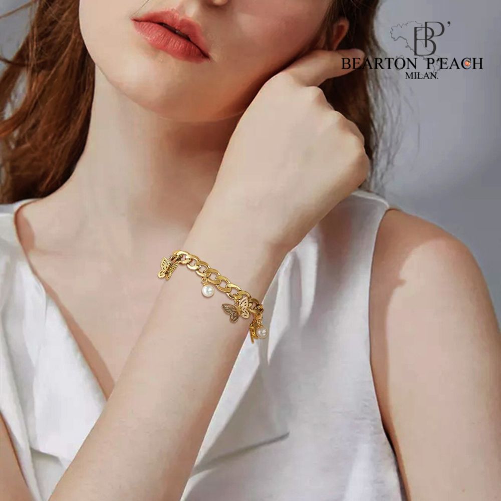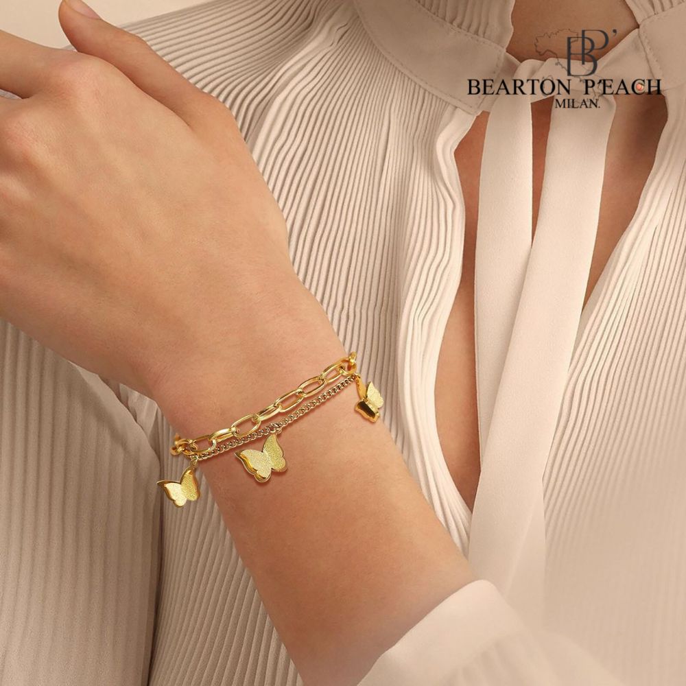 צמיד זהב קלאסי בעיצוב פרפרים עדין